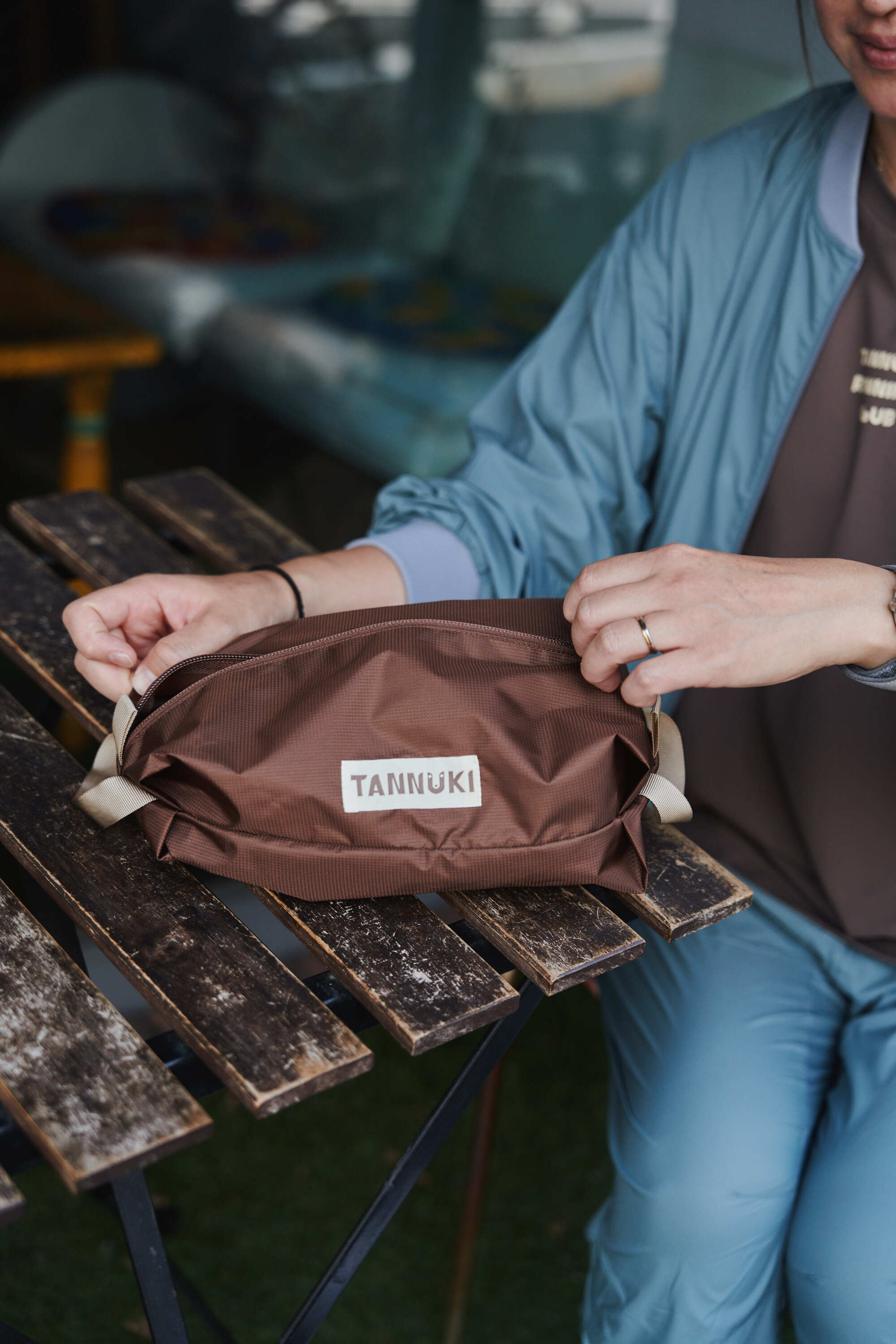 TANNUKIのシグネチャーカラーでもある落ち着きのあるカプチーノカラーがベースとなっており、シックさとあたたかみのある、これまでのスタッフサックにはあまり無かったカラーリングとなっています。付属のベージュカラーのテープとも好相性です。
