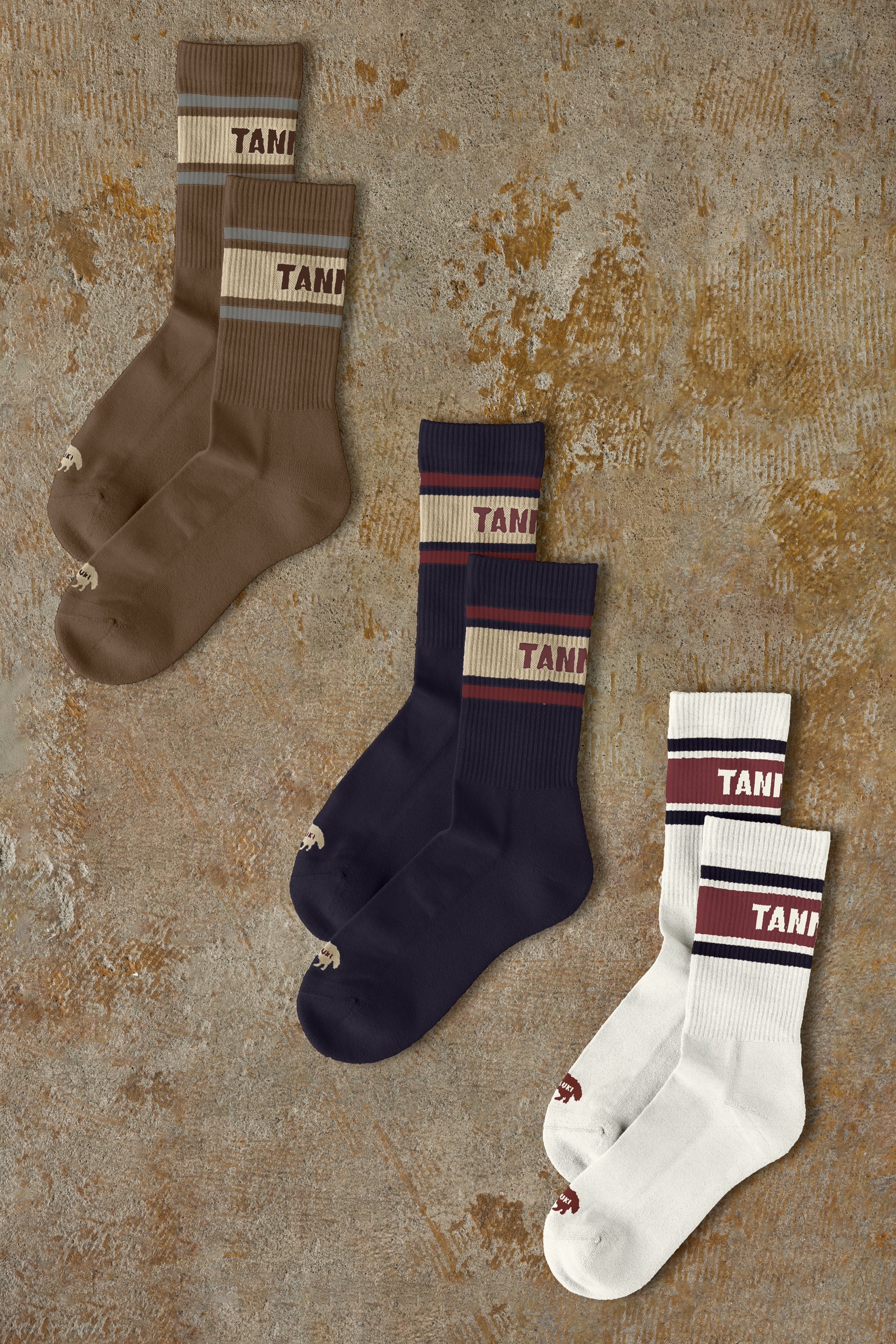These crew-length running socks pair perfectly with slightly shorter shorts like TANNUKI's Sato Wind Shorts. The cushioned, slightly thick pile sole reduces impact from the ground. While they don't offer compression or arch support, they offer a comfortable fit that doesn't restrict the foot and makes them easy to put on and take off. Rib design is also placed in the midfoot for a better fit.