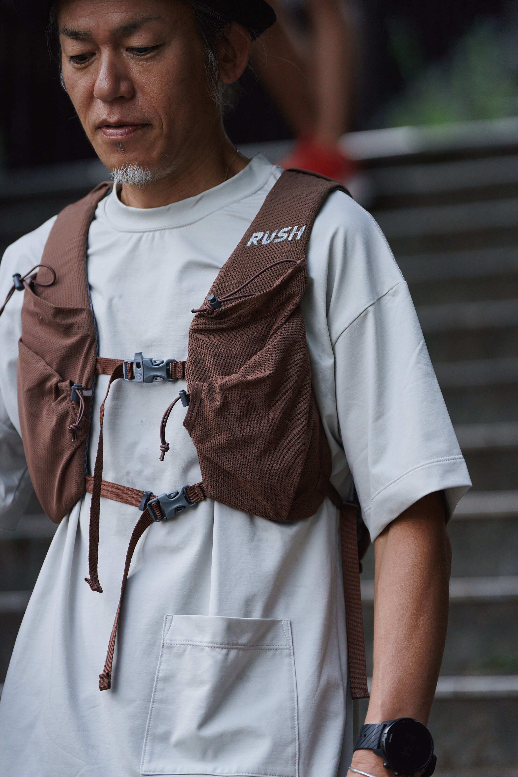 At TANNUKI, we want to avoid slim silhouettes that look too serious. We want our products to be worn as an extension of everyday life. That's why we previously developed an oversized T-shirt, which has been extremely well-received since its release, thanks to the relaxed feel of the relaxed silhouette and the fun feeling it provides when running (and of course, we'd like to continue making them in the future). However, one weakness is that it sometimes doesn't work well with running packs (the amount of fabric is so large that it gets bunched up at the sides, which could be considered a cute silhouette in its own way, and in fact, some runners actually like it that way though...).