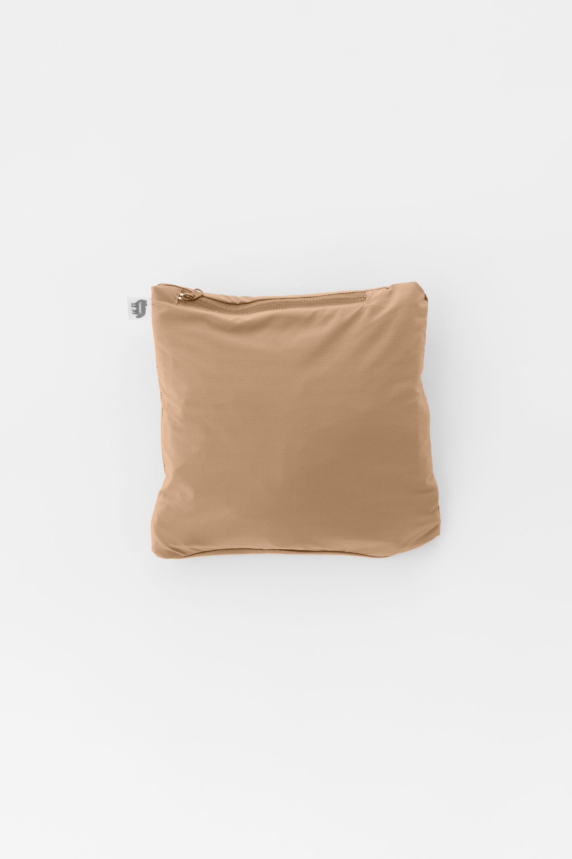 右側のサイドポケットにはセキュリティ用途としても使えるジッパーを配置、そのジッパーを使ってパッカブル仕様となっています。左側のサイドポケットは開けやすいスナップボタン仕様となっています。