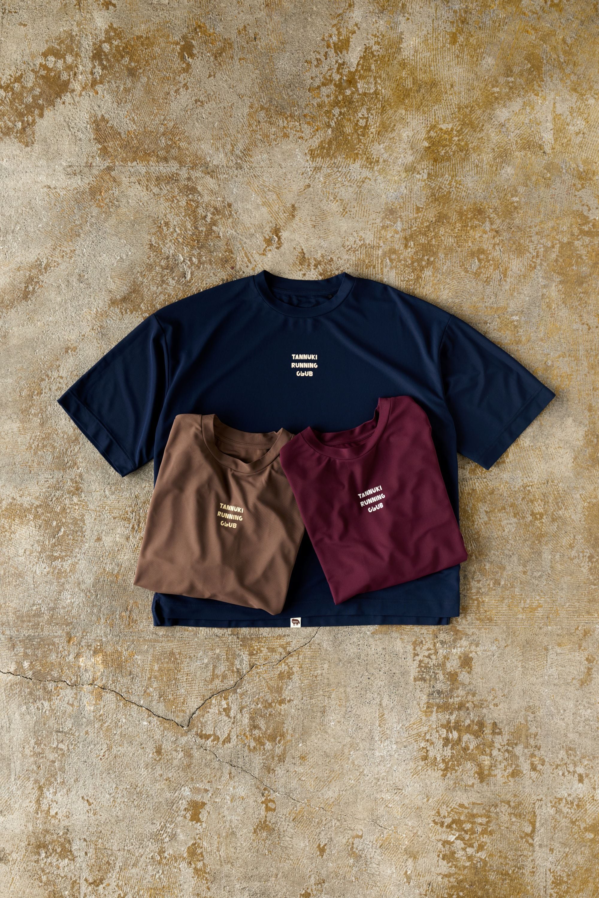 ワッフル素材のビッグTで人気のTANNUKI RUNNING CLUBグラフィックですが、同じデザインをひっそりと控えめに前身頃に配置しました。ビッグシルエットのボディに小さなロゴの対比を楽しんでもらえたらと思います。主張の弱い小さいロゴはコーディネートのしやすさにもつながるのではと思っています。