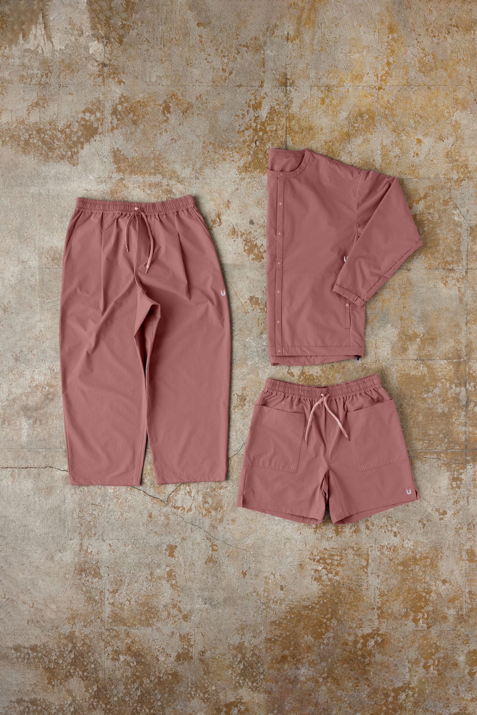 The material is a newly adopted 100% polyester material whose fibers have a spring shape (although we cannot see it with our eyes). It is very lightweight and comfortable, yet stretchable and easy to move around in. It also has a water-repellent finish that resists stains and light rain. On the other hand, the texture has a natural feel reminiscent of cotton, and it blends in easily both in the mountains and in town.