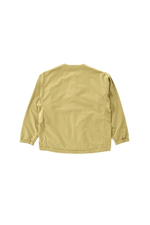 襟周りはシンプルな丸首タイプです。下にフード付きアイテムなんかを合わせても相性が良さそうです。ポケットはフロントに1つパッチポケットがあって、例えばジェルなんかをさっと取り出すことが可能です。サイドにはジッパー付きポケットとスナップボタン付きポケットが付属します。ジッパー付きの方は、パッカブル仕様となっていまして、携帯するのにも便利です。