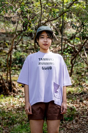 元々は架空のランニングクラブであったTANNUKI RUNNING CLUBの名称をブランドのオリジナルフォントでグラフィック化しています。こちらを着ていただければ皆公認のランニングクラブメンバーと思っています。